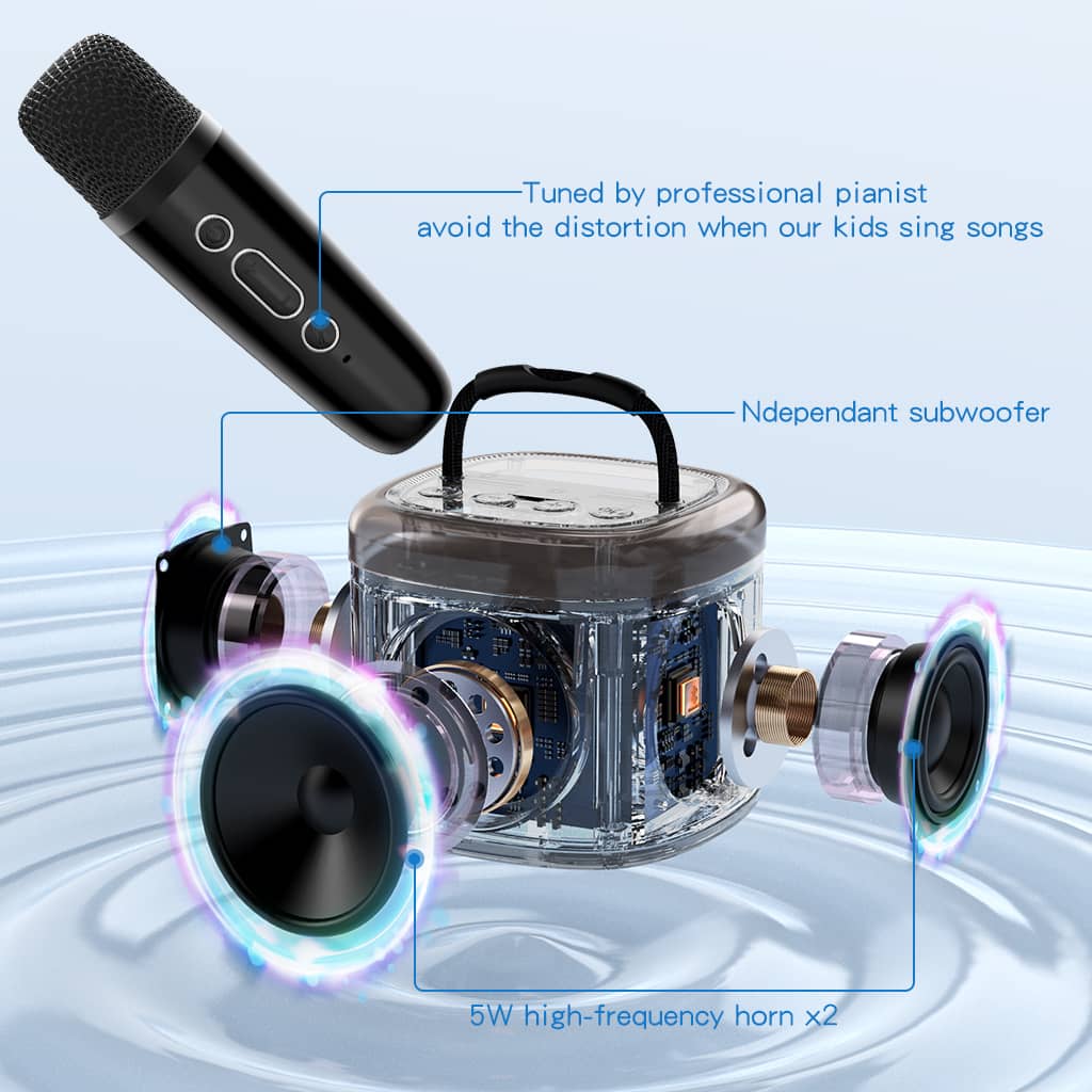 ✨The ideal gift for music-loving kids! JYX D17 Kids' Karaoke Machine is a compact and kid-friendly speaker that connects to smartphones via Bluetooth or plays music from a TF card. It comes with two wireless microphones and colorful LED lights!
