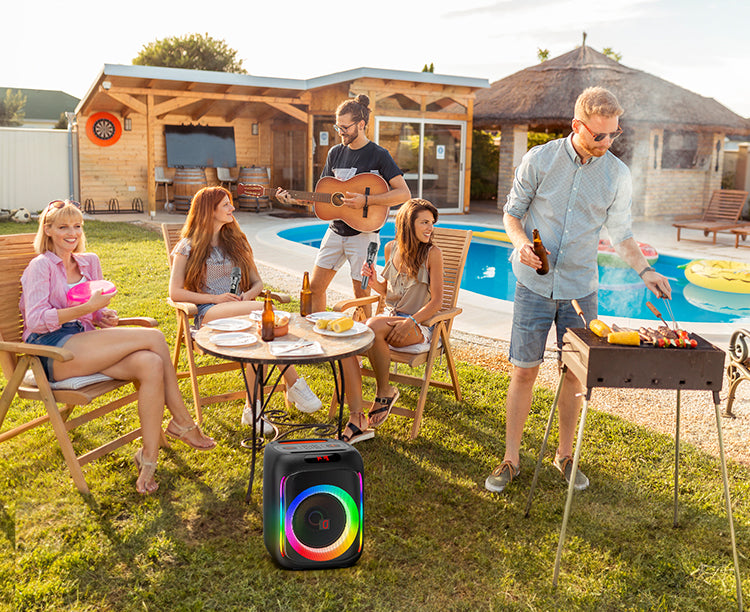 JYX T16T karaoke machine with Bluetooth and microphone. 200W peak power and 3D surround sound for a pleasant karaoke and fantastic music journey.